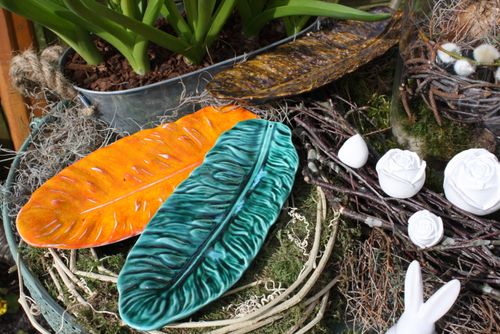 Diese Schale in Form einer Feder kann so vielseitig eingesetzt werden. Für den stilvoll gedeckten Tisch, aber auch als Schmuckablage, sie eignet sich aber auch zum räuchern. Hierfür ist ein kleines Löchlein zum halten eines Räucherstäbchens eingearbeitet worden. Die Farbauswahl könnt Ihr, passend zu Eurer Einrichtung festlegen.